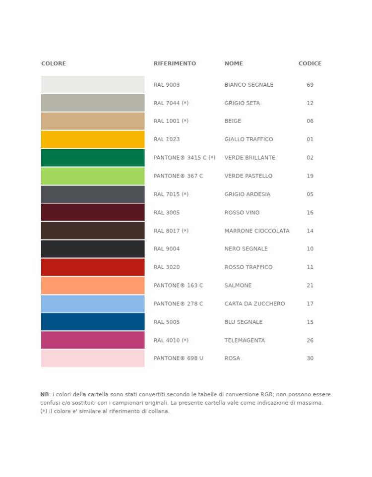 Disponibile in molti colori, conferma disponbilità dei vari colori in fase di preventivo
