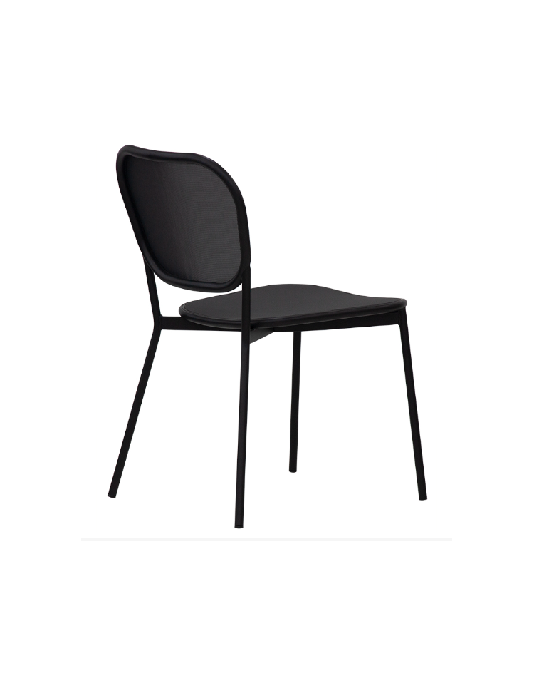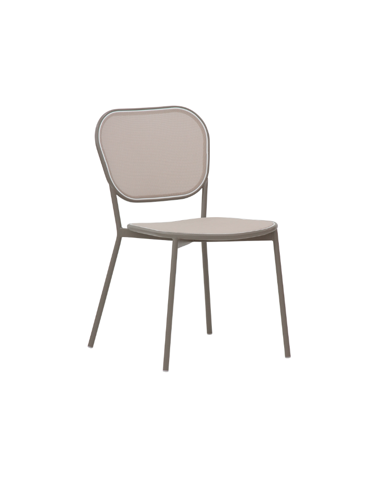 Struttura in metallo verniciato, adatta per uso esterno, seduta e schienale in textilene.