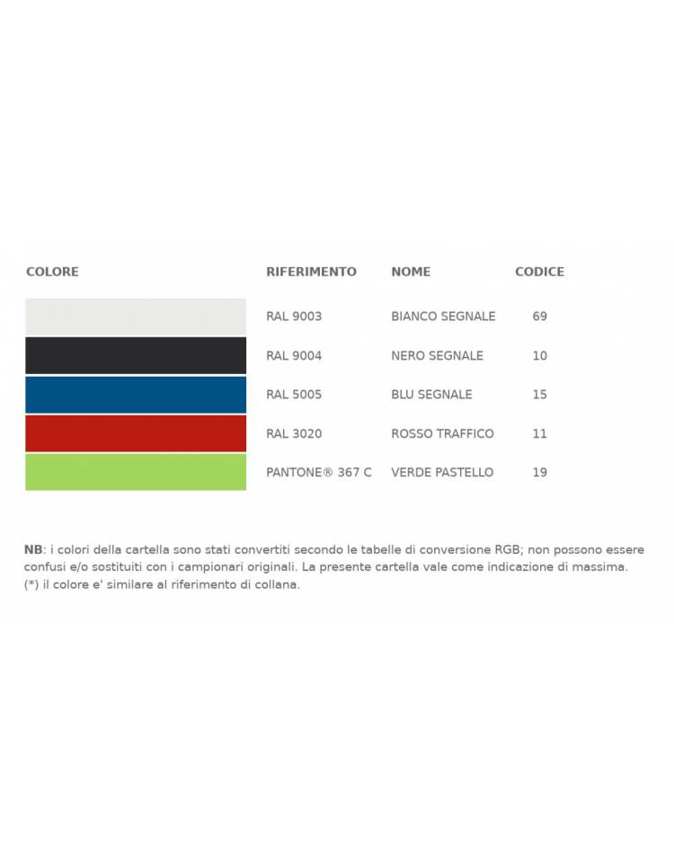 Stampata in polipropilene copolimero di prima scelta, additivato con cariche antistatiche e colorato in massa con pigmenti di alta solidità alla luce.