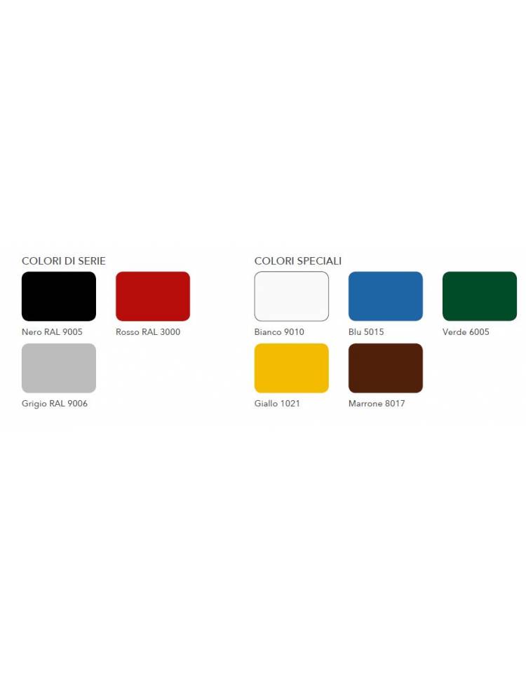 Verniciatura a polveri epossidiche previo sgrassaggio e fosfatazione cotte a forno a 200°C. / __ _