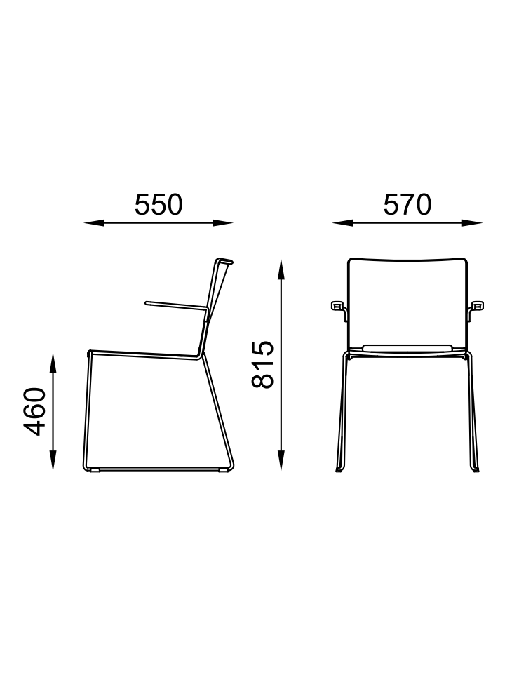 Braccioli con pad in polipropilene della stessa colorazione di sedile e schienale