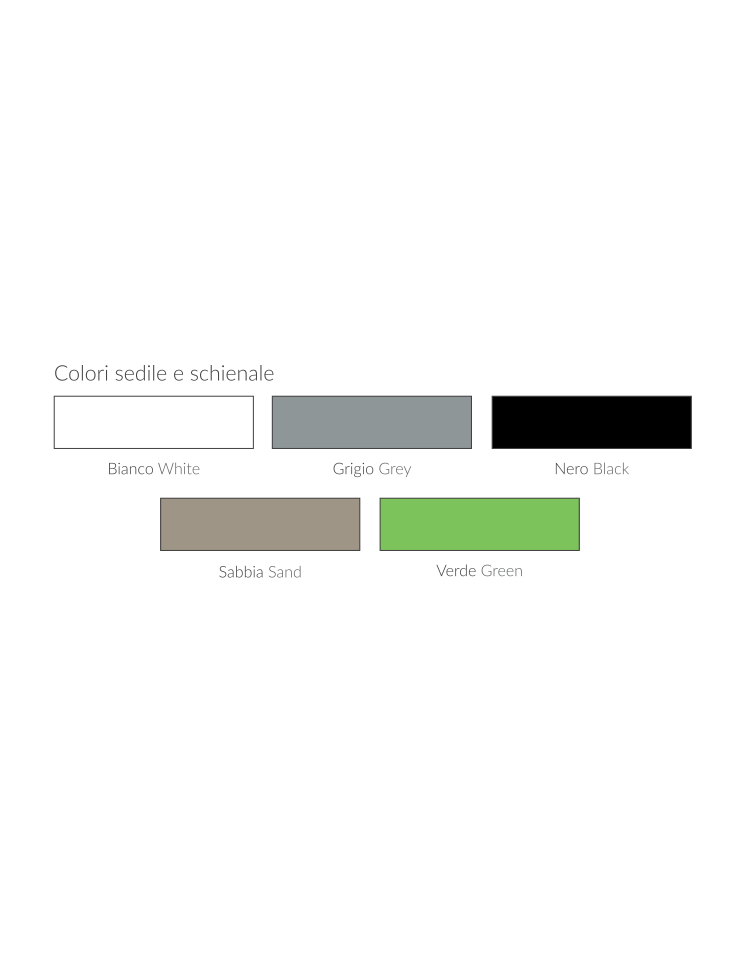Colori Schienale e Sedile a scelta: Bianco, Grigio, Nero, Sabbia o Verde.