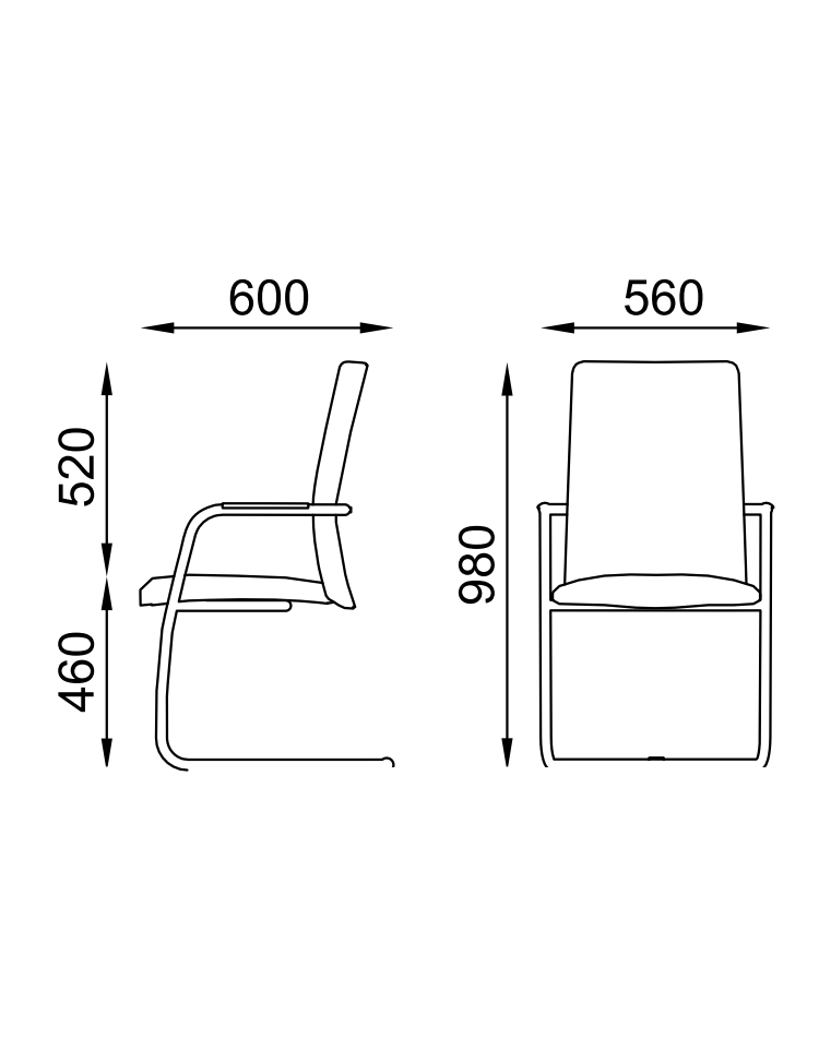 Sedia visitatore telaio a slitta nero con braccioli - schienale alto interamente rivestito - rivestimento ignifugo - CAM