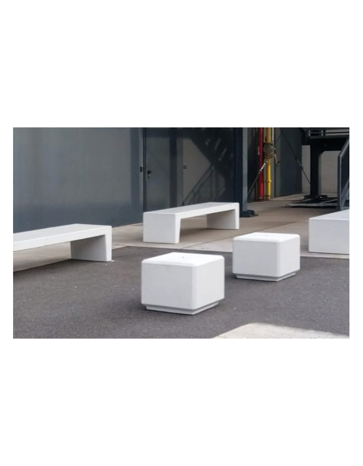 Seduta cubo realizzata in graniglia di marmo, con fianchi bocciardati e seduta levigata - senza schienale - cm 50x50x45h