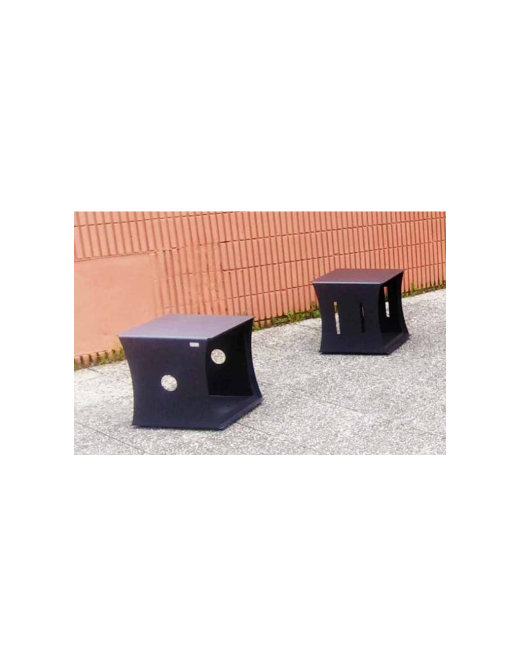 Seduta L.500 mm con struttura in acciaio zincato e verniciato, con base di rialzo dal suolo. Possibilità di avere differenti decori laterali, interamente in metallo. Da affiancare come pouf ad altre panchine o mettere su percorsi pedonali come piccola sosta.