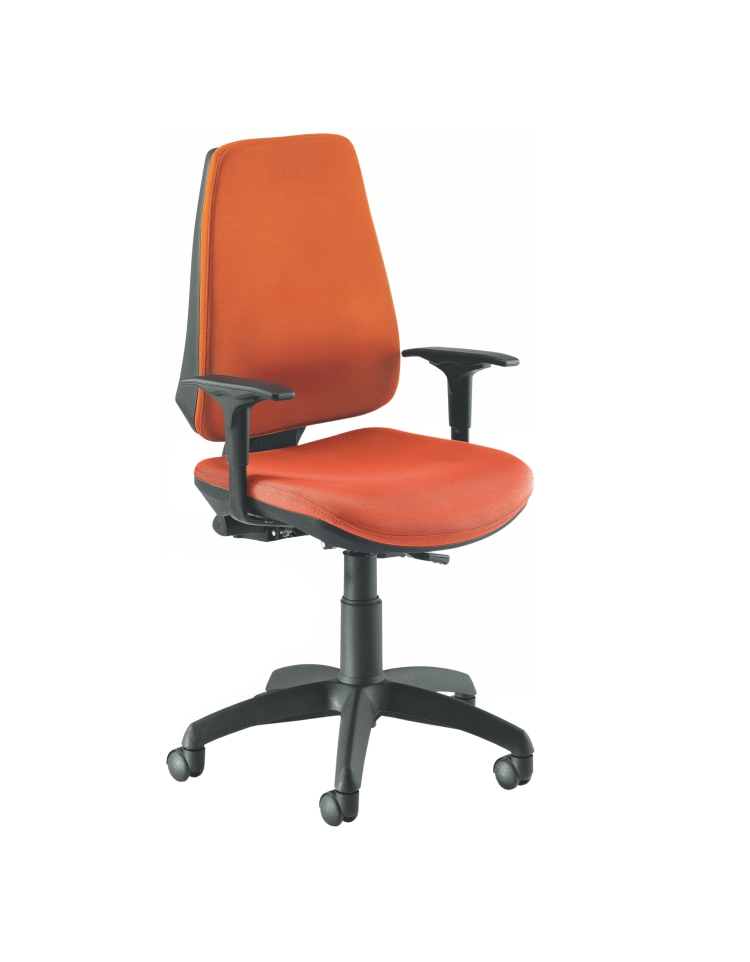 • Sedia operativa con braccioli e base in nylon nero - alzata a gas - schienale regolabile cm 60x66x104/117h Sedia operativa con braccioli e base in nylon nero - alzata a gas - schienale regolabile cm 60x66x104/117h