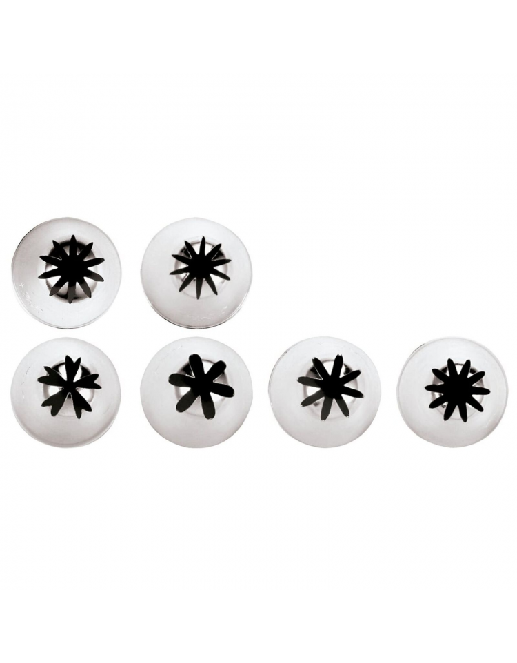 Set 6 bocchette per sac à poche in acciaio inox unipezzo - diametro base mm 25