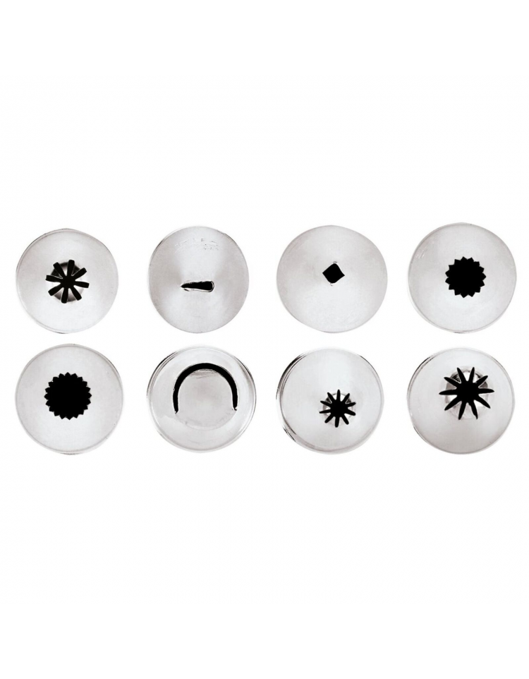 Set 8 bocchette per sac à poche in acciaio inox unipezzo con fori assortiti - diametro base mm 18