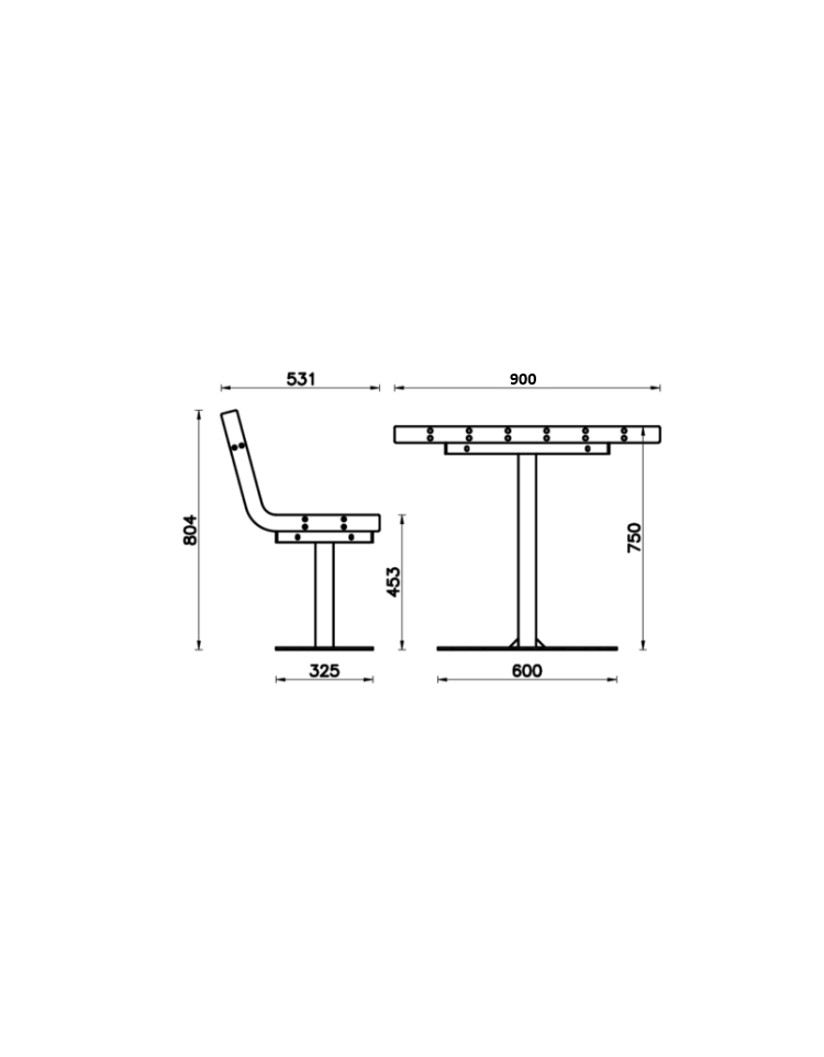 Set composto da tavolo e due sedie con schienale. Struttura portante in tubolare in acciaio zincato e verniciato nelle varie colorazioni RAL. Nella parte inferiore sono saldate le piastre base per poter fissare il set al suolo con tasselli ad espansione. Nella parte superiore sono saldate le piastre dove andranno fissate le doghe in legno. La seduta ed il piano del tavolo sono formati da doghe in legno di pregio. Per dare stabilità alla seduta centralmente è fissato tramite viti un rinforzo. Viteria in acciaio inox. Elegante e moderno si integra bene sia con il classico che con il moderno. Scacchiera non inclusa nel prezzo.