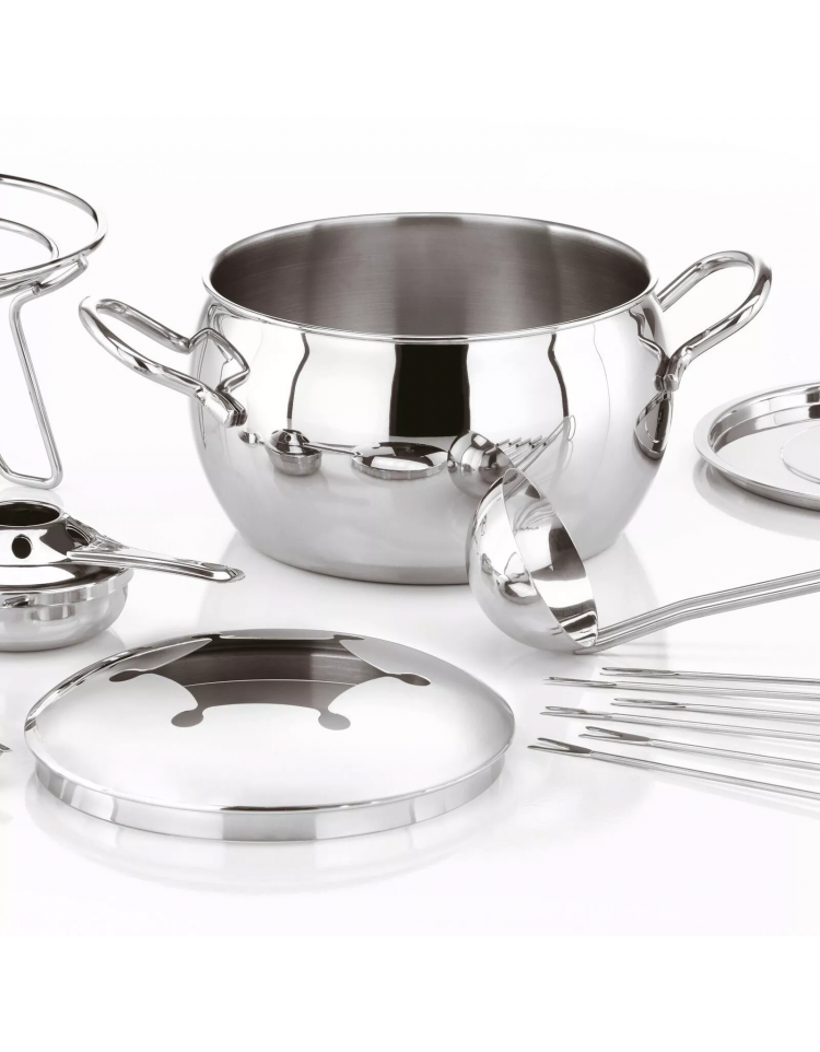 Set fonduta bourguignonne in acciaio inox - 13 pezzi.
