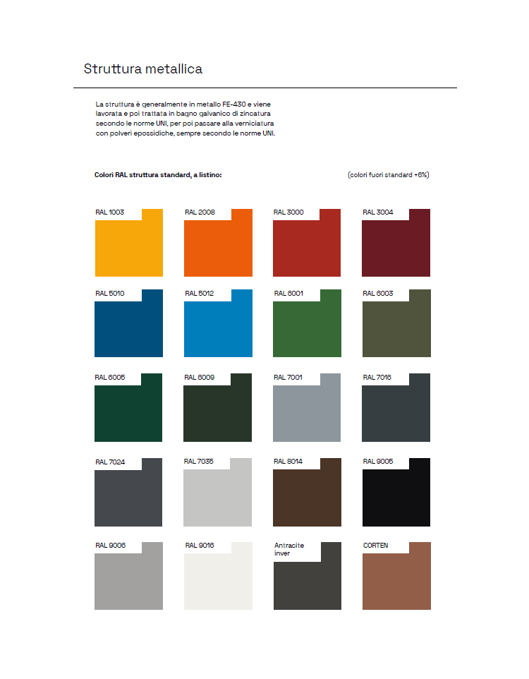 Set composto da un tavolo rettangolare e due panchine piane. Il set è composto da una struttura in acciaio zincato e successivamente verniciata a polveri epossidiche. La seduta ed il piano del tavolo sono composti da doghe in legno di pino impregnato in autoclave.