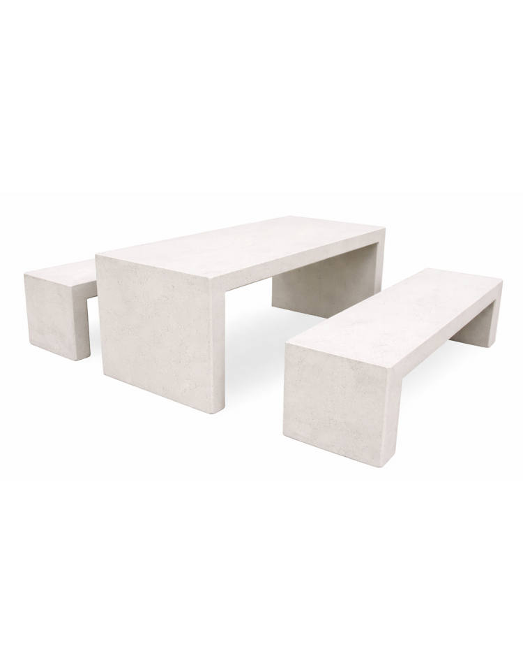 Set pic nic in cemento colore Bianco travertino trattamento IDROREPELLENTE - 1 tavolo cm 200x80x80h e 2 panche cm 200x50x50h