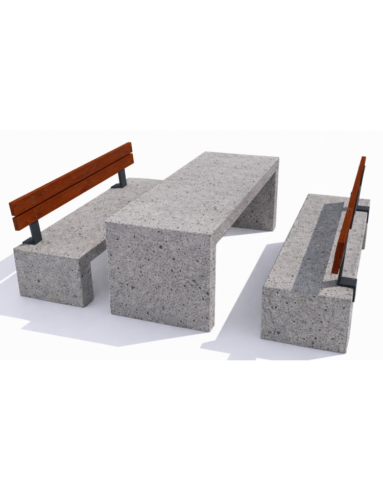 Set pic nic in cemento IDROREPELLENTE colore Grigio travertino - 1 tavolo+2 panche con schienale legno - Lunghezza cm 200 - CAM