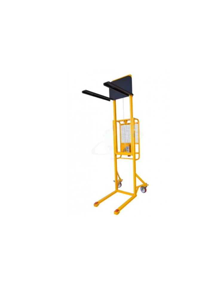 Pratico e funzionale permette di sollevare carichi di 200 Kg fino ad un massimo di 2.500 mm. L'esclusivo argano a manovella permette di sollevare il carico col minimo sforzo e attraverso la frizione automatica incorporata si può bloccare la salita in qualsiasi punto nel sollevamento. La discesa del carico può avvenire solo se l'operatore agisce intenzionalmente sull'argano e ne provoca la graduale discesa.