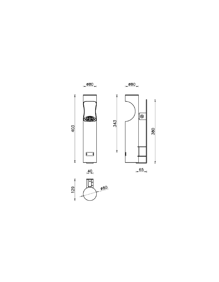 Spegnisigarette interamente in acciaio, di forma cilindrica, predisposto per il fissaggio a muro tramite apposita staffa.