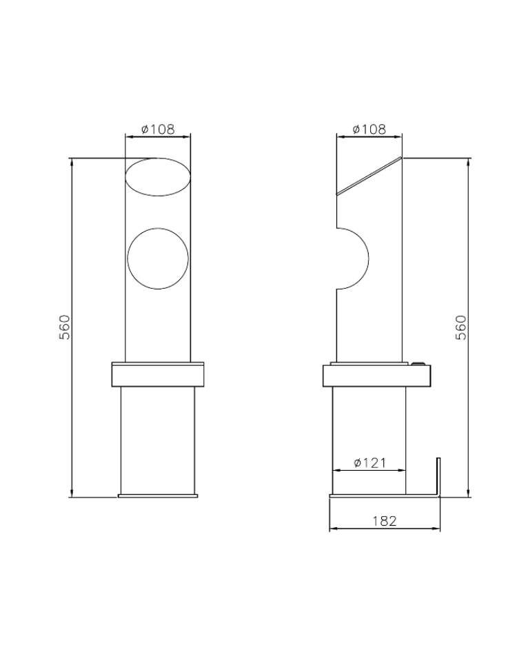 Spegnisigarette realizzato in acciaio inox. Da fissare a muro - cm Ø12,1x56h