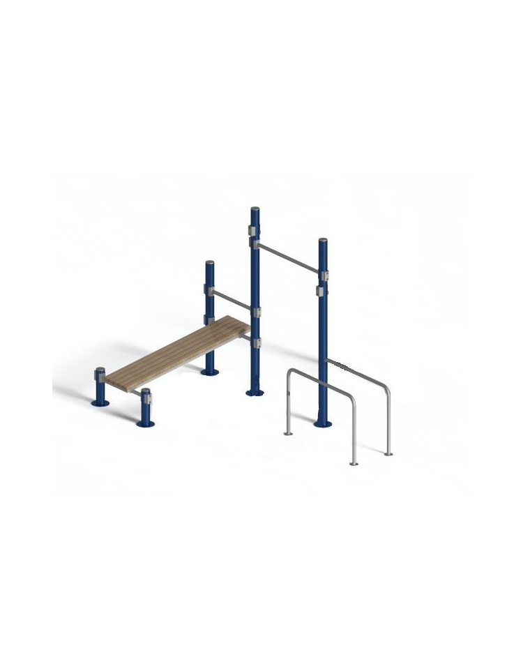 • 1 PANCA OBLIQUA in legno di pino o in polietilene per rinforzare la muscolatura addominale e del petto, facendo trazione con braccia e gambe alla sbarra posizionata sopra la panca.