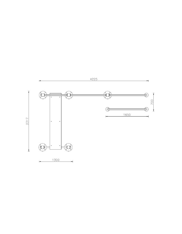 Completa di piastre basi per il fissaggio al suolo con tasselli o possibilità di prolungare i supporti per il fissaggio al suolo tramite inghisamento.