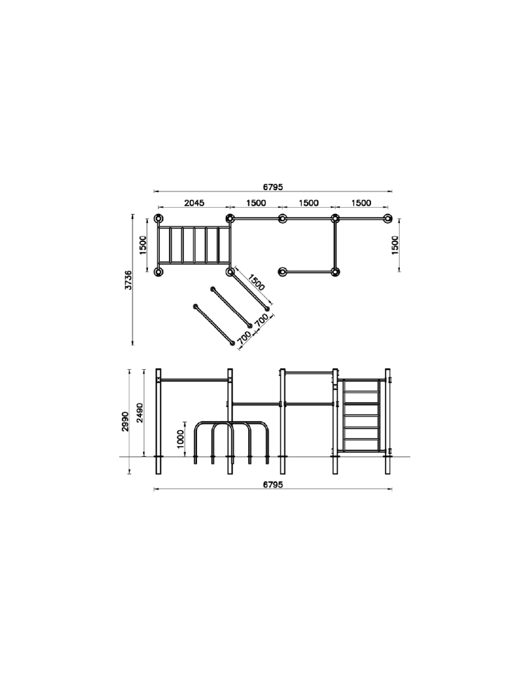 Composizione Fitness per fare calisthenics. Attrezzo fitness realizzato con una struttura in acciaio zincato e verniciato composta da montanti e traversi in tubolare.