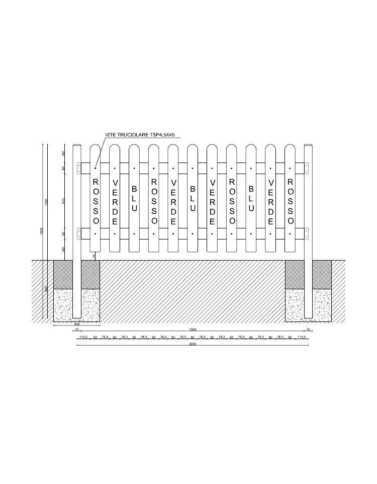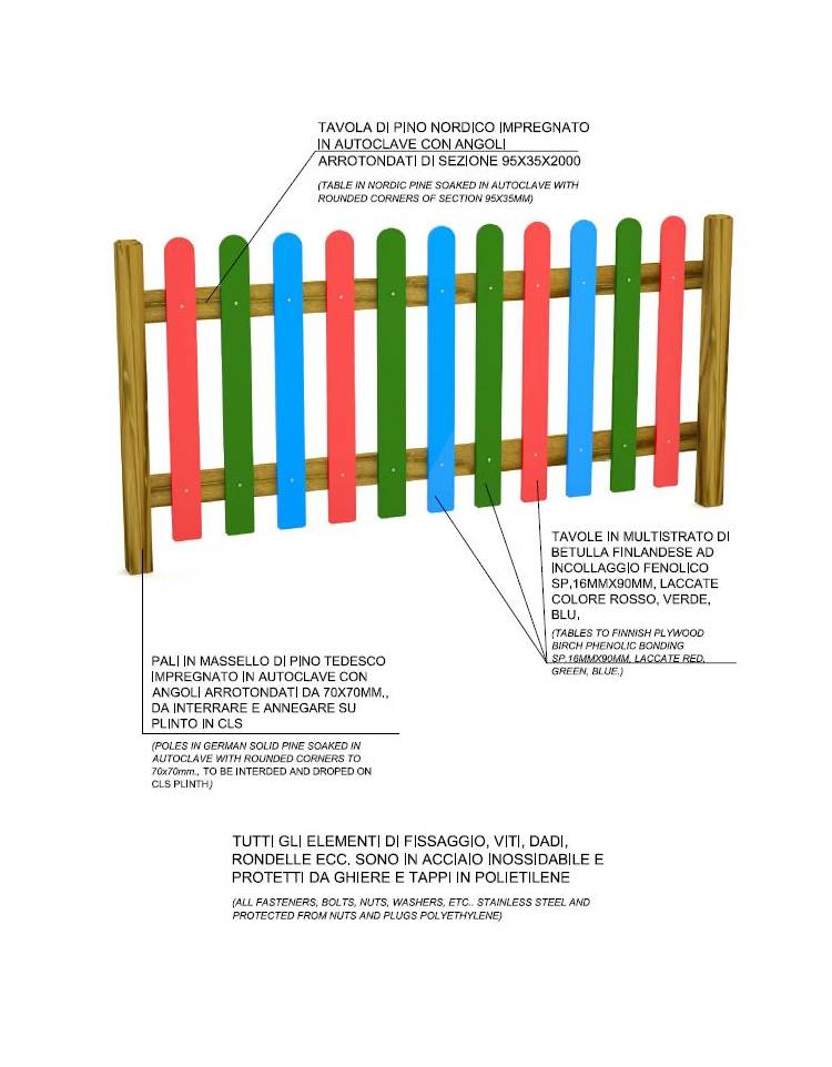 Steccato inglese con doghe in multistrato di betulla colorato e piantone in legno di pino massello-cm 200x12x100h-Da interrare