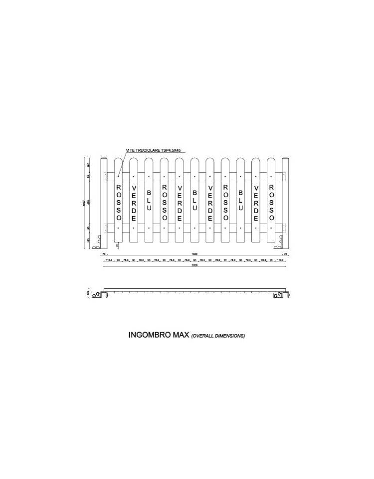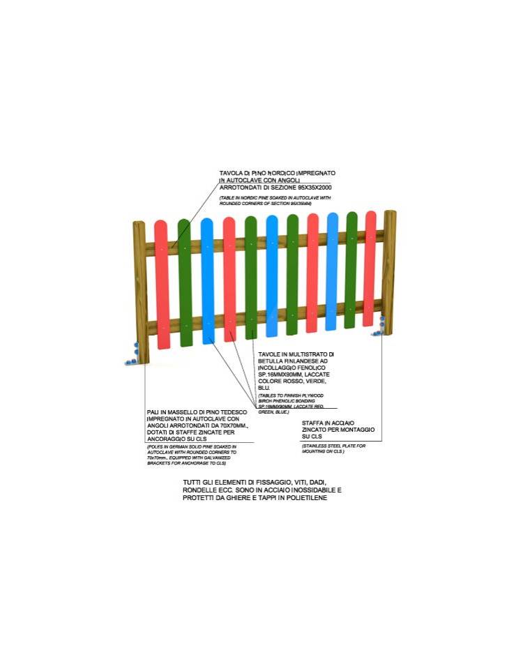 Steccato inglese con doghe in multistrato di betulla colorato e piantone in legno di pino massello-cm 200x12x100h-Da tassellare