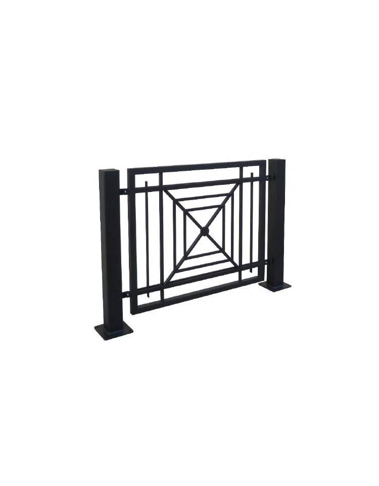 La barriera è composta da due sostegni in tubolare di acciaio sez. 10x10 cm con flangia alla base 200 mm Senza fori per la versione da inghisare per una profondità di 200 mm o con fori per fissaggio al suolo tramite tasselli ad espansione. Tutte le parti metalliche sono zincate e verniciate a polveri poliestere termoindurenti secondo le diverse colorazioni RAL.