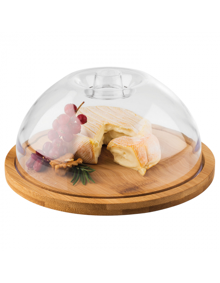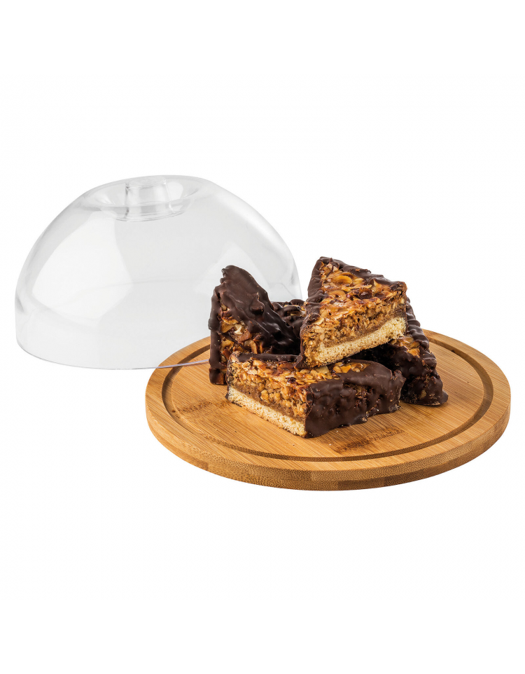 Tagliere rotondo in bambù con cloche in polistirene - diametro cm 20,5 - altezza cm 10