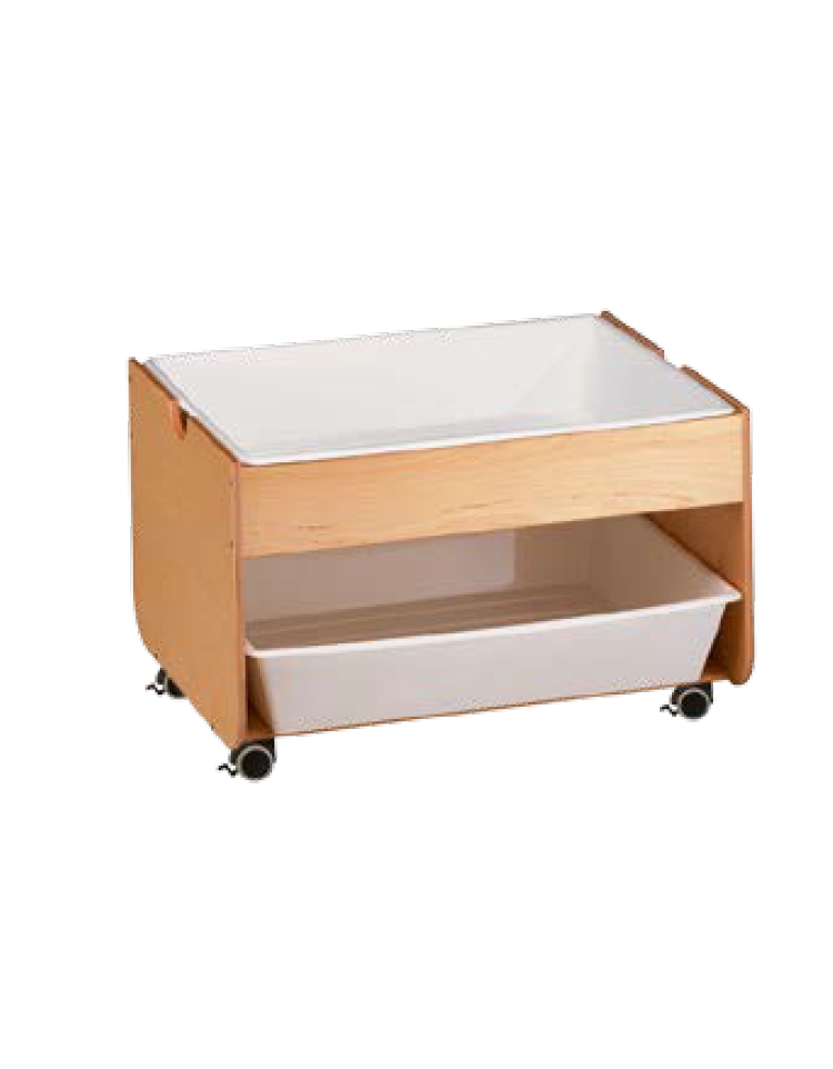 TAVOLO CARRELLO ACQUA SABBIA ETA' 0/3 ANNI CON VASCA ESTRAIBILE, STRUTTURA IN LEGNO DI BETULLA - cm 120x70x61H