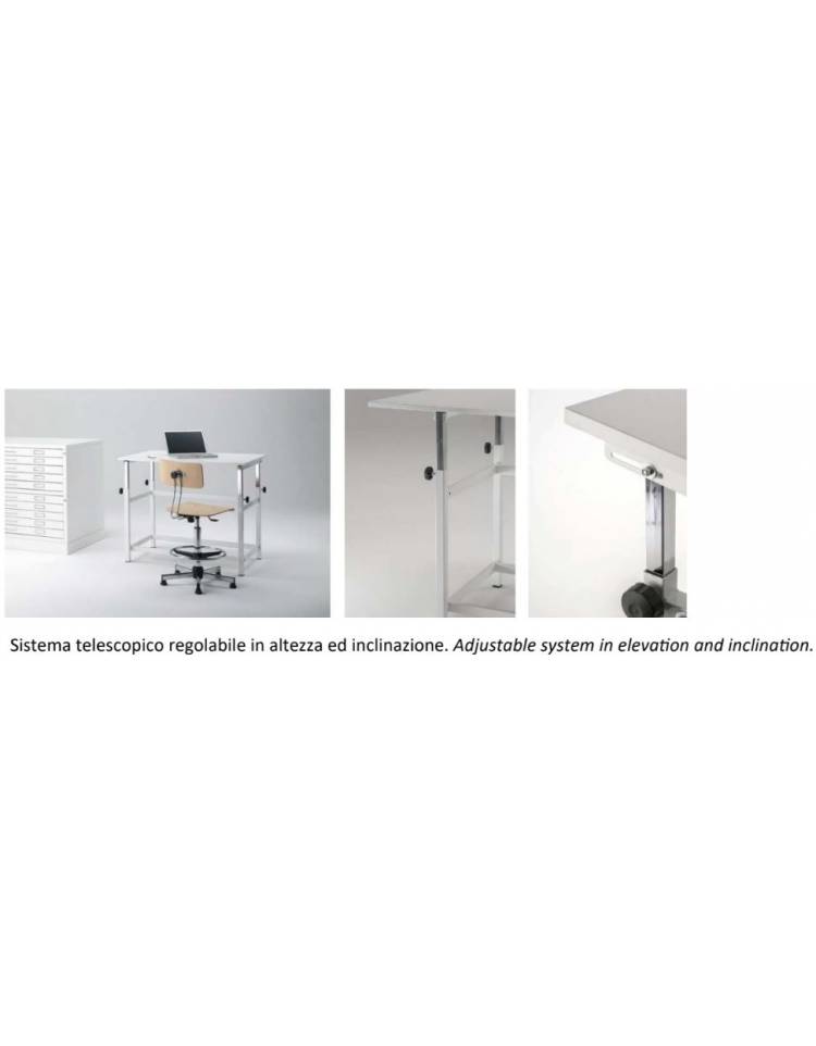 Tavolo da disegno e laboratorio, elevazione ed inclinazione regolabili con sistema telescopico, bloccaggio a volantini.