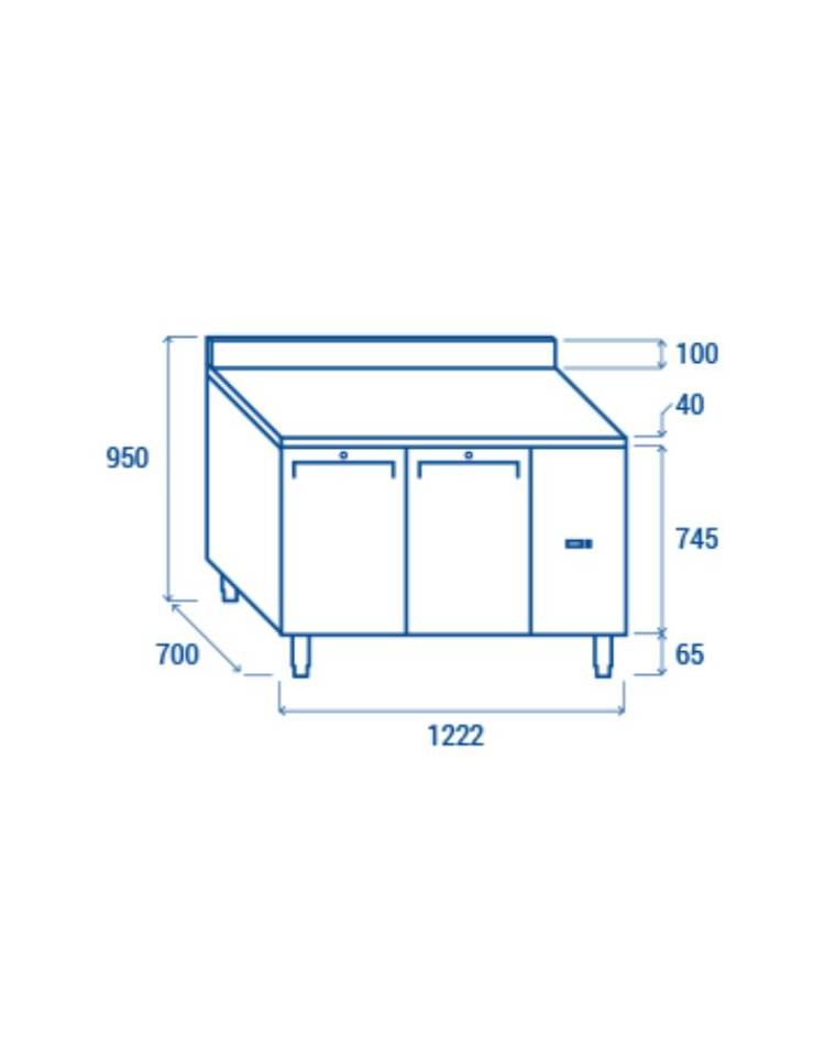 Tavolo GN1/1 refrigerato con alzatina 2 porte con motore remoto ( escluso ) refrigerazione ventilata -2° +8°C-cm 122,2x70x95h