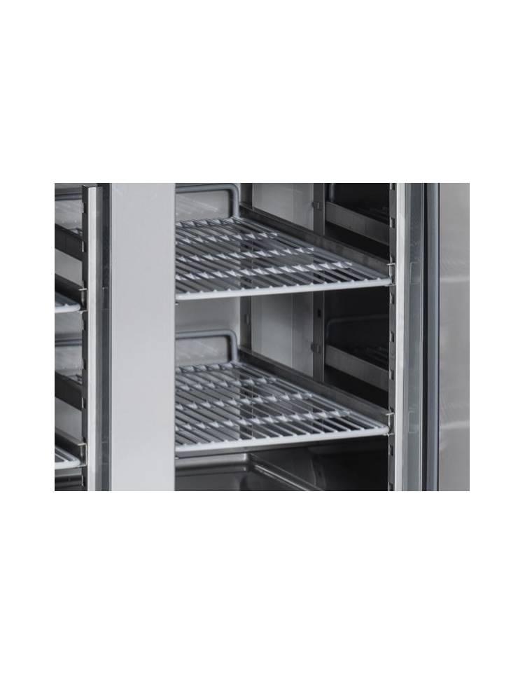 Tavolo refrigerato dall’aspetto moderno, con nuovo design della porta, top con bordi arrotondati e display digitale, questo modello è predisposto per l’installazione del motore remoto (non incluso). Il tavolo rappresenta la perfetta combinazione tra efficienza e affidabilità, con 700mm di profondità, 2 porte, cassetti disponibili come optional, 2 ripiani regolabili GN1/1 per ogni porta e piedini regolabili in altezza (da 85 mm a 135 mm) Il nostro banco frigo è stato progettato con attenzione all’ambiente e al risparmio energetico, dotato di schiumatura isolante da 60 mm su ciascun lato, porte con spessore maggiorato e sagomatura interna per una migliore tenuta termica, e porte autochiudenti per evitare sprechi di energia.