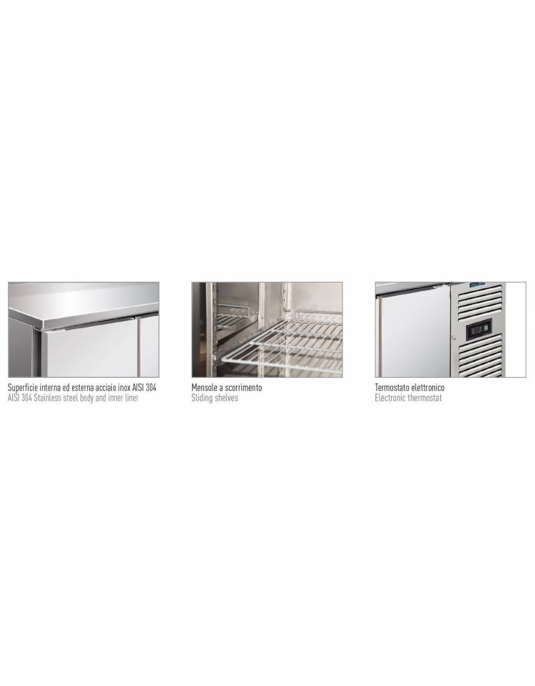 Tavolo orizzontale refrigerato positivo 4 Porte ventilato -2° +8°C inox AISI 304 - CLASSE D - Tropicalizzato - cm 223x60x86h