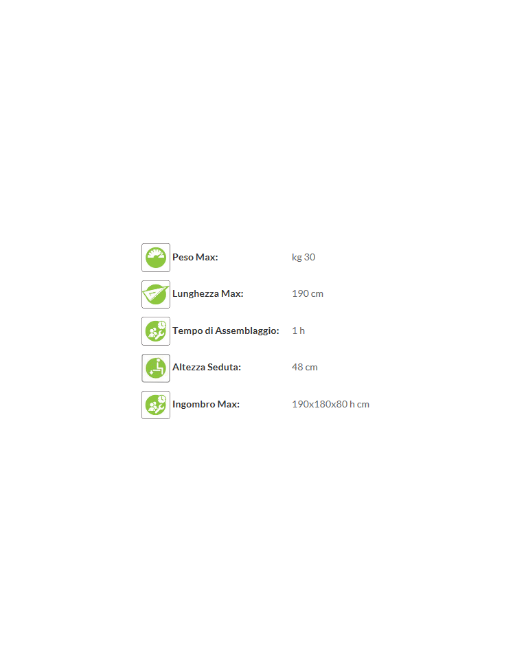 Ingombro Max: 190x180x80 h cm