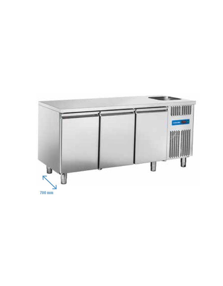 Tavolo Refrigerato, 3 porte in vetro, 2 luci Neon e lavello cm192x74x110h
