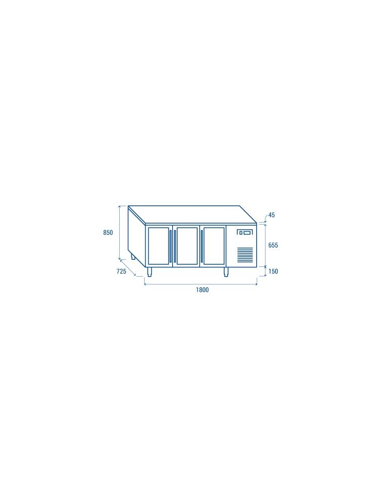 Tavolo refrigerato 3 porte a vetro in acciaio inox, refrigerazione ventilata +3° +10°C - Classe C - cm 180x72,5x85h
