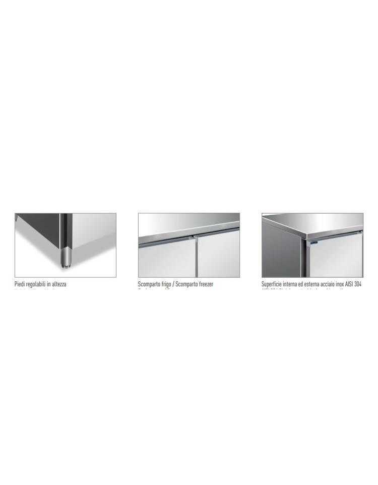 Tavolo refrigerato 3 Porte doppia temperatura con 2 sportelli frigo -2°/+8°C ed 1 sportello Freezer -20°/-10°C-cm 179,5x70x86h