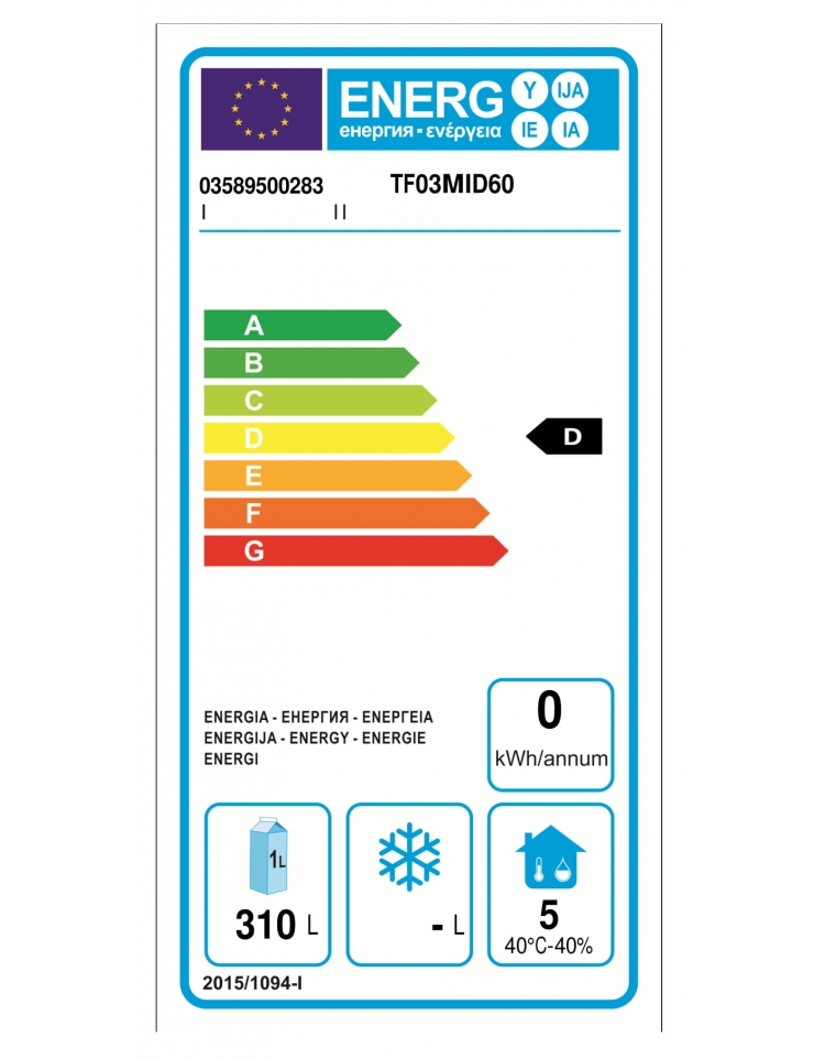 Volume interno : 541 Litri
