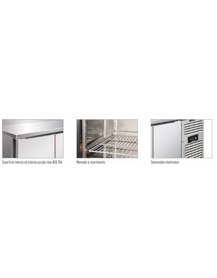 Tavolo refrigerato congelatore GN 1/1 Inox AISI 304 ventilato -18°-22°C - 3 porte - Lt 358 - Classe D - cm 179,5x70x86h