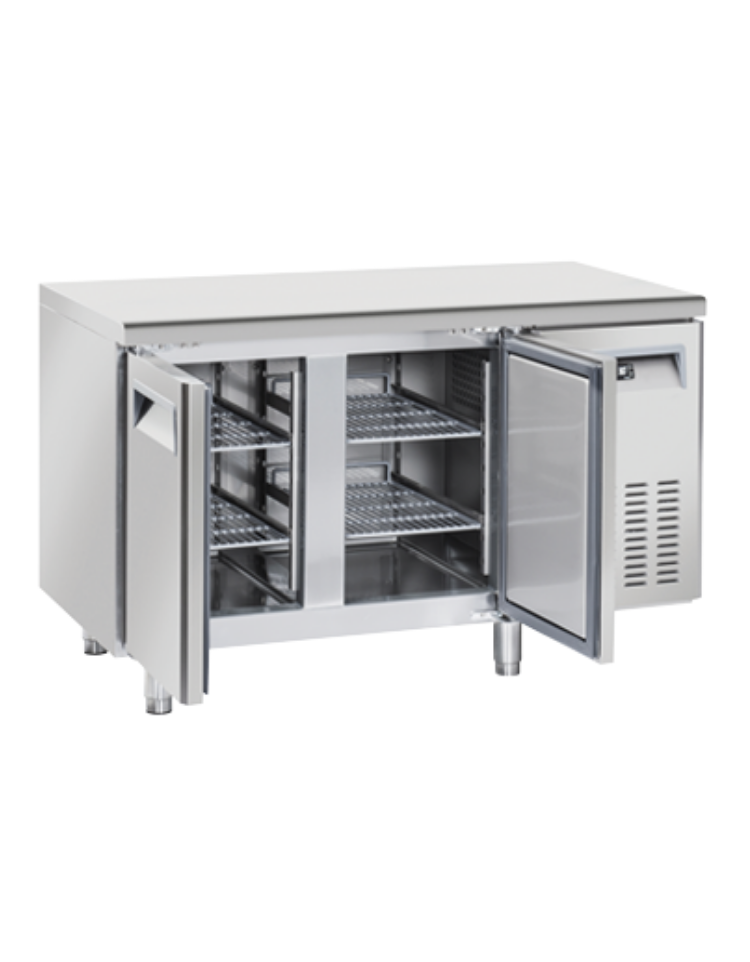Tavolo refrigerato congelatore negativo 2 porte in acciaio inox - refrigerazione ventilata -18°/-22°C - cm 135x70x85h