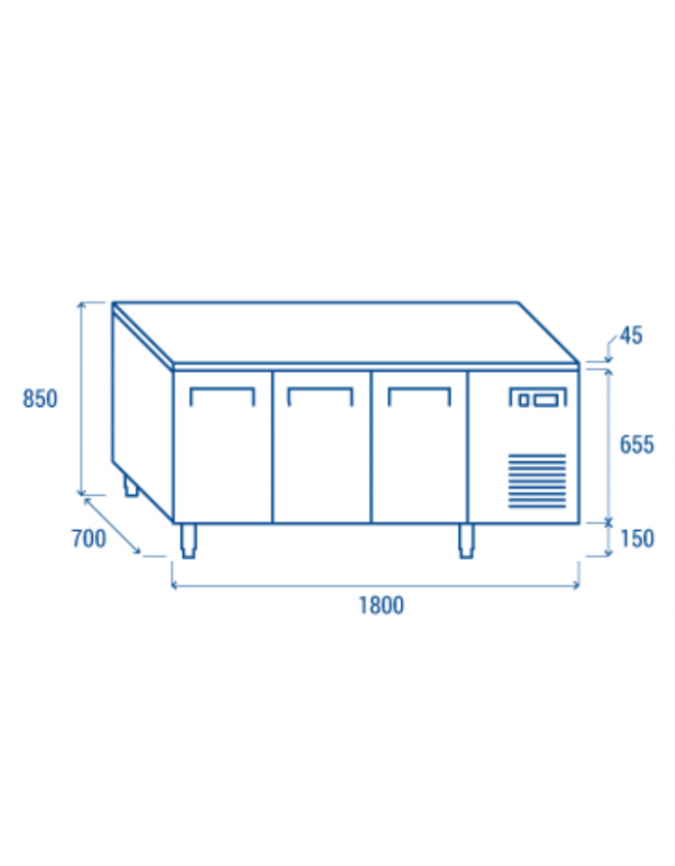 Tavolo congelatore dall’aspetto moderno, con nuovo design della porta, top con bordi arrotondati e display digitale. Il modello rappresenta la perfetta combinazione tra efficienza e affidabilità, con 700mm di profondità, 3 porte e 2 ripiani regolabili GN1/1 per ogni vano. Il nostro banco freezer è stato progettato con attenzione all’ambiente ed al risparmio energetico, equipaggiato con gas refrigerante eco-friendly R290, schiumatura isolante da 60 mm su ciascun lato, porte autochiudenti con spessore maggiorato e sagomatura interna per una migliore tenuta termica ed evitare sprechi di energia. Motore con sistema monoblocco per agevolare gli interventi di manutenzione e piedini regolabili in altezza (da 145 mm a 185 mm) contribuiscono a rendere questo prodotto un’attrezzatura ideale per la ristorazione professionale.