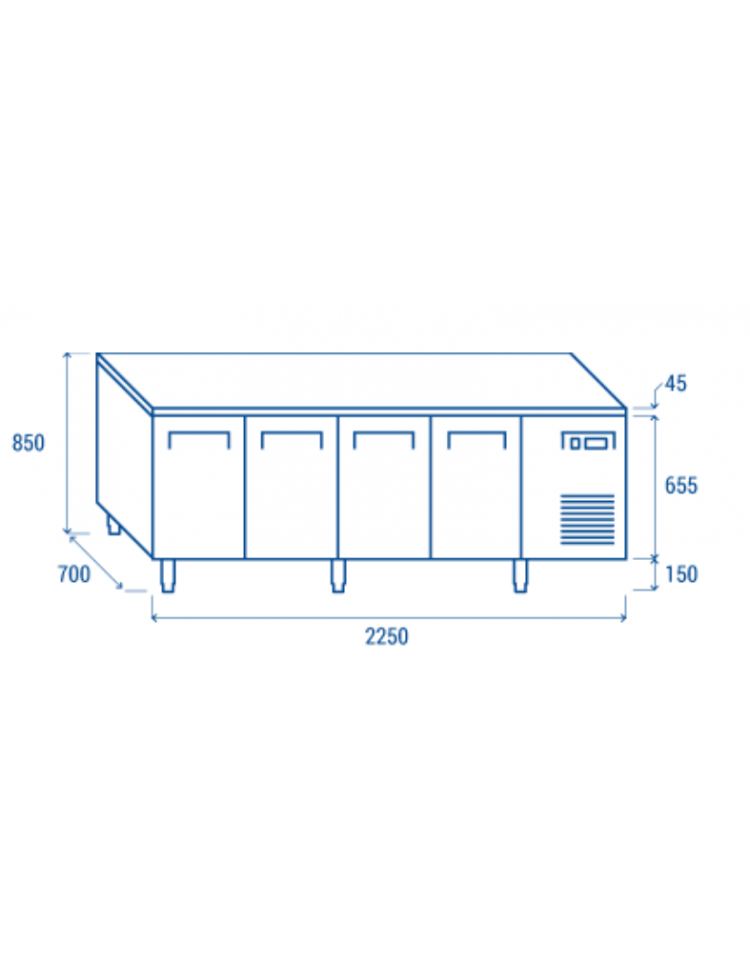 Tavolo congelatore dall’aspetto moderno, con nuovo design della porta, top con bordi arrotondati e display digitale. Il modello rappresenta la perfetta combinazione tra efficienza e affidabilità, con 700mm di profondità, 4 porte e 2 ripiani regolabili GN1/1 per ogni vano. Il nostro banco freezer è stato progettato con attenzione all’ambiente ed al risparmio energetico, equipaggiato con gas refrigerante eco-friendly R290, schiumatura isolante da 60 mm su ciascun lato, porte autochiudenti con spessore maggiorato e sagomatura interna per una migliore tenuta termica ed evitare sprechi di energia. Motore con sistema monoblocco per agevolare gli interventi di manutenzione e piedini regolabili in altezza (da 145 mm a 185 mm) contribuiscono a rendere questo prodotto un’attrezzatura ideale per la ristorazione professionale.