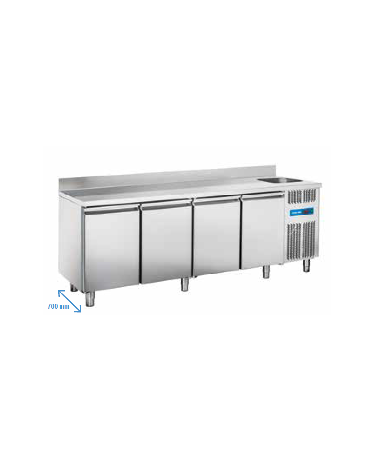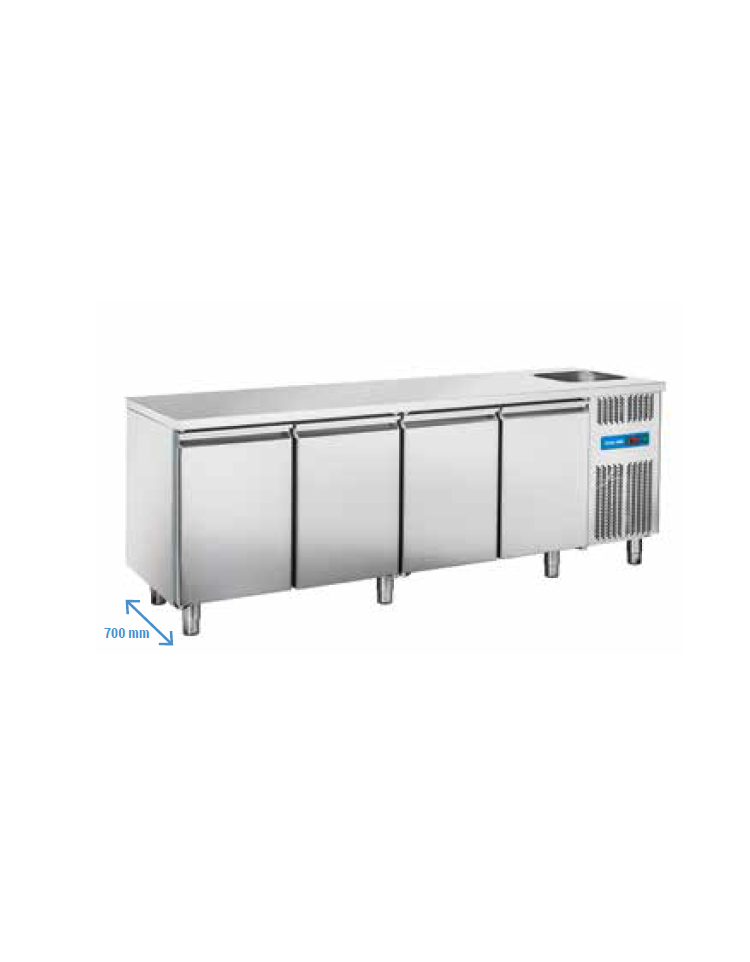 Tavolo Refrigerato GN 1/1 con 4 porte e piano con lavello cm 232x70x115 h