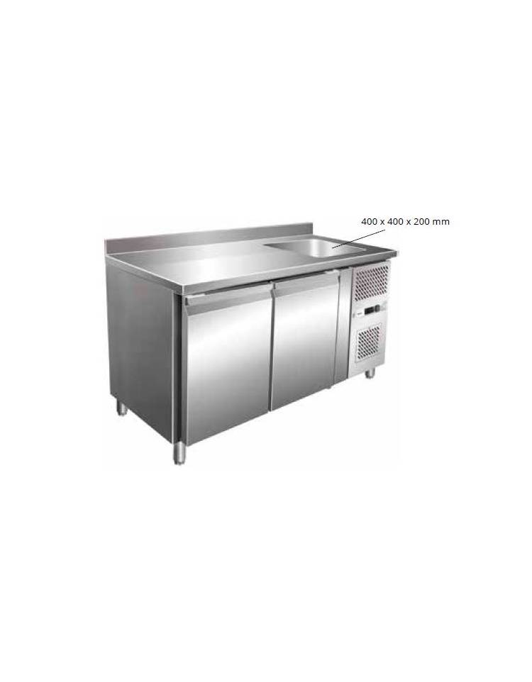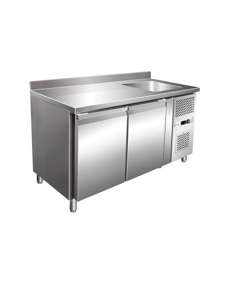 Tavolo Refrigerato GN 1/1 con 2 porte e piano con lavello cm 40x40x20h - Ventilato -2° +8°C -CLASSE B - Dimensioni cm 151x70x96h