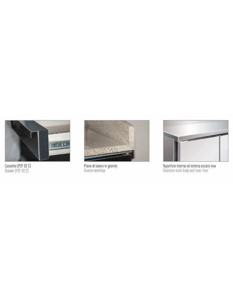 Tavolo refrigerato pizzeria 2 porte TROPICALIZZATO con cassettiera a 7 cassetti neutri - Ventilato +2°+8°C - piano in granito