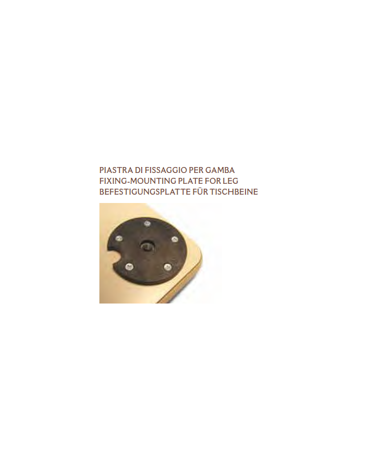 La struttura a 4 gambe è realizzata in legno massello di faggio FSC tornito a sezione circolare da mm 60 di diametro, lucidate al naturale con vernici trasparenti atossiche a base d'acqua; le gambe sono ancorate al piano tramite sistema ad innesto con perno filettatto che è avvitato su bussola da 6MA incassata in una piastra brevettata antistrappo realizzata in materiale plastico, questo sistema esclude i telai sotto piano salvaguardando i corretti spazi antropometrici. Il piano è realizzato in pannelli di legno multistrati di betulla in classe E1 di emissione di formaldeide da mm 21 di spessore, rivestito sulle due facce (bilaminato) con laminato plastico HPL da 9/10 di spessore ignifugo classe 1 di reazione al fuoco, finitura opaca e natigraffio, colore magnolia. I bordi a vista, sono lucidati al naturale con vernice trasparente atossica e sono arrotondati a tutto raggio nel rispetto della normativa di sicurezza vigente. Alla base delle gambe sono posti dei puntali regolabili anti rumore realizzati in robusto materiale plastico.