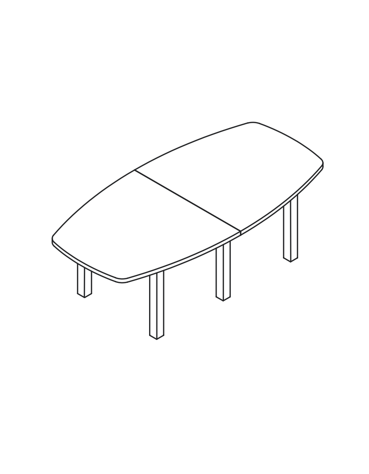 Tavolo riunione con piano sagomato composto in melaminico e struttura metallica - colori a scelta - cm 240x120x74h
