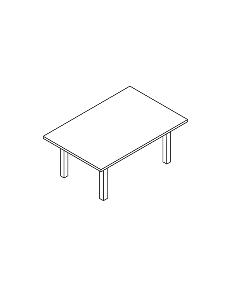 Struttura metallica con gambe ad “Ponte” realizzata in tubo di acciaio sezione 80x80 e dotata di distanziali in nylon in tinta con la struttura. La struttura è verniciata a polveri epossidiche colore grigio, bianco o antracite ed è dotata di piedini livellatori. Travi sotto piano realizzata in tubo di acciaio sezione 30x30 sono verniciate a polveri epossidiche colore grigio.
