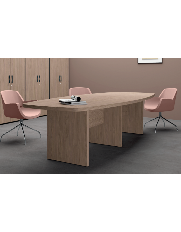 Tavolo riunione sagomato composto con piano e gambe pennellate in melaminico - colori a scelta - cm 280x120x74h