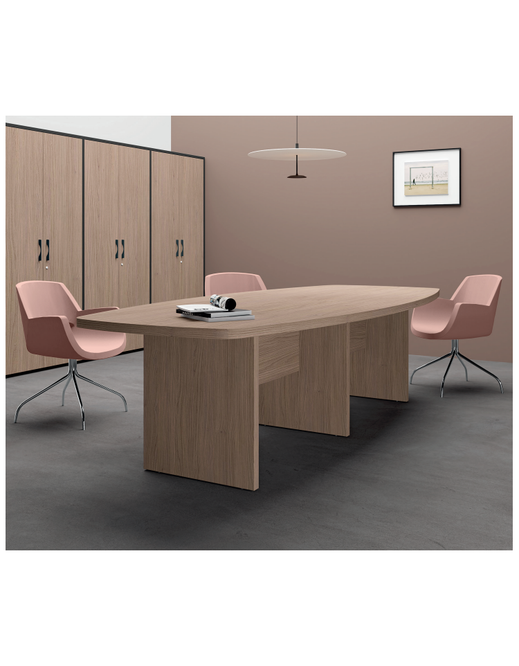Tavolo riunione sagomato con piano monoblocco e gambe pennellate in melaminico- Colori a scelta - cm 180x120x74h