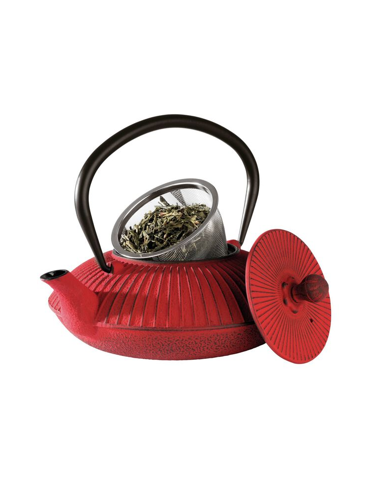 Teiera in ghisa smaltata con colino in acciaio inox - colore rosso - 2-3 tazze - capacità ml 800 - cm 19,5x18x15h